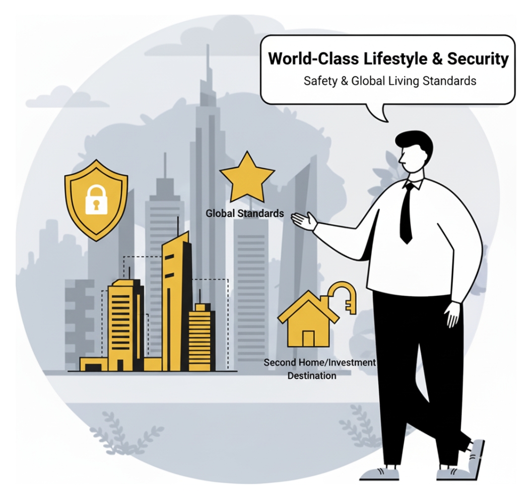 Dubai offers modern infrastructure, safety, and global living standards — making it the perfect second home or investment destination.